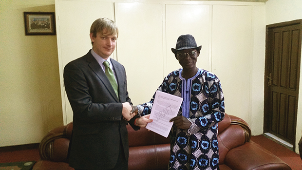Mr Malcolm Dingwall-Smith who was seconded from sportscotland to the Commonwealth Secretariat, meets with Mr Paul Kamara, the then Sport Minister of Sierra Leone.