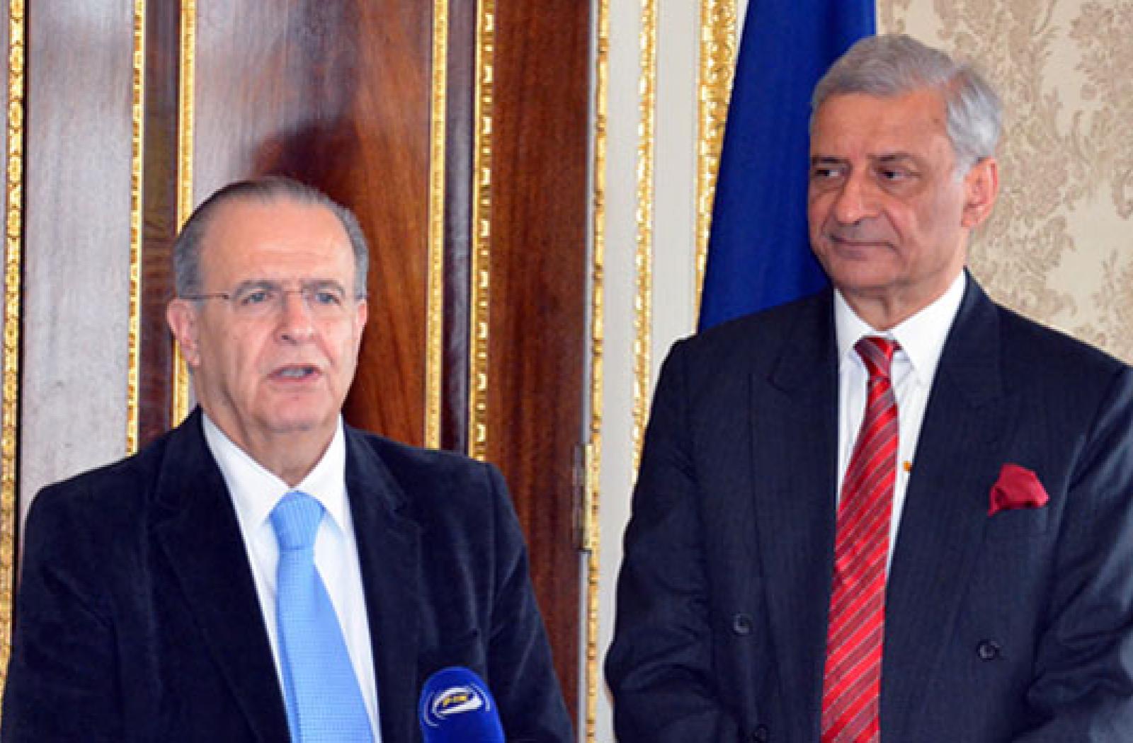 Cyprus Foreign Minister Ioannis Kasoulides meets with Commonwealth Secretary-General Kamalesh Sharma