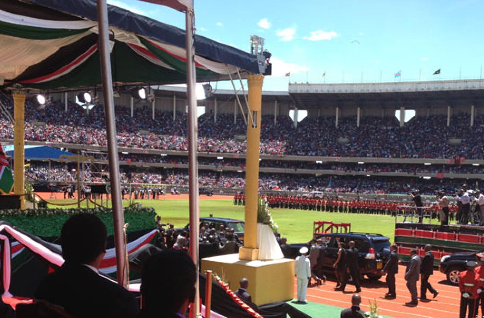 Uhuru Muigai Kenyatta was sworn in as Kenya's fourth President at an inauguration ceremony before a rapturous crowd of roughly 60,000 people and attended by at least a dozen African heads of state and government and other dignitaries.