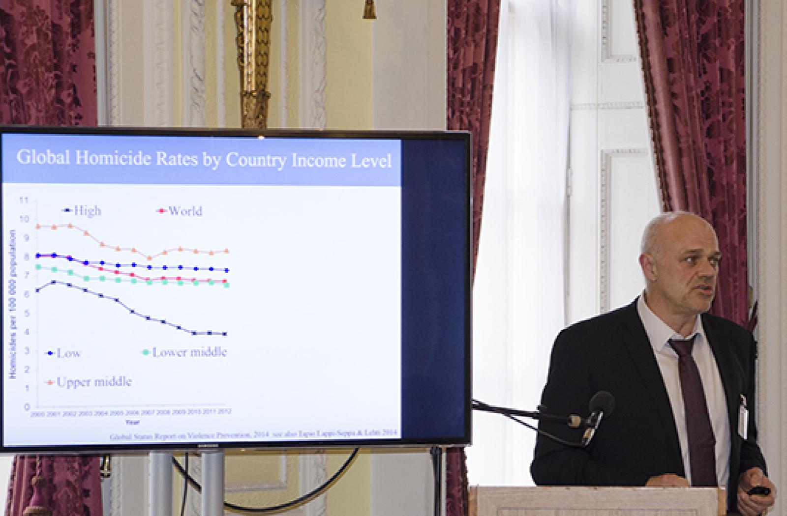 At the meeting, he presented findings from research into interpersonal, collective and extreme violence ahead of the Commonwealth Health Ministers Meeting, which takes place on 21 May. Ministers will focus on the role of the health sector in preventing violence and creating stable societies.