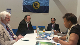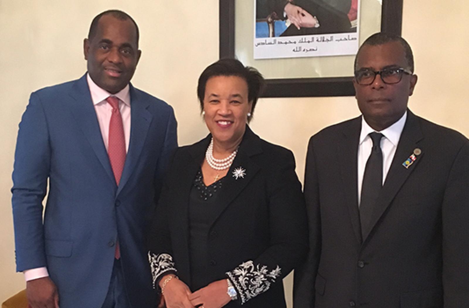 Secretary-General Patricia Scotland met with Dominica’s Prime Minister Roosevelt Skerrit, Bahamas’ Foreign Minister Fred Mitchell, and Canada’s Environment Minister Catherine McKenna, after arriving at the COP22 conference in Marrakesch yesterday.