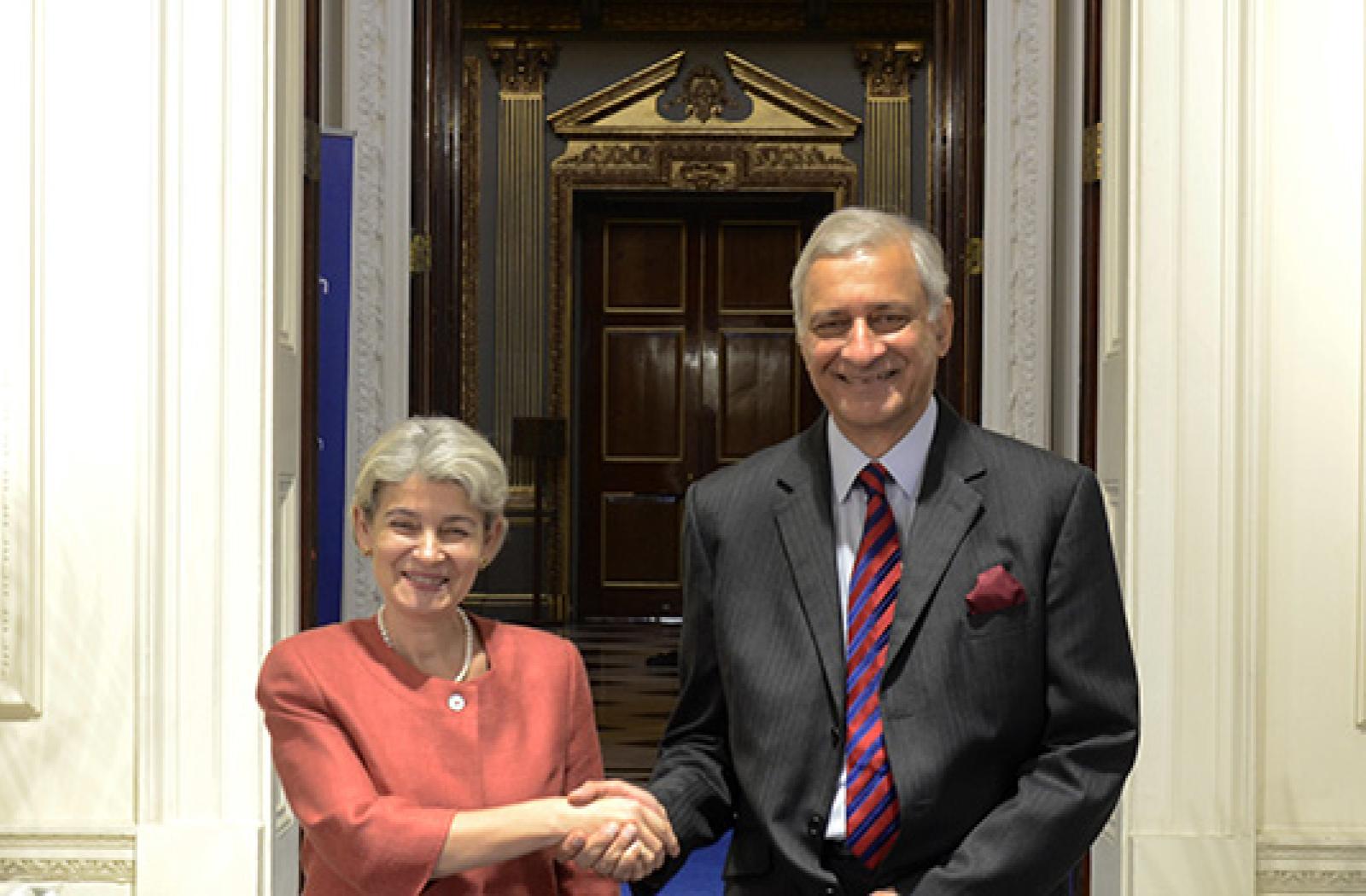 Commonwealth Secretary-General, Kamalesh Sharma, and the Director-General of UNESCO, Irina Bokova, agreed to strengthen their relationship during a working lunch at Marlborough House today.