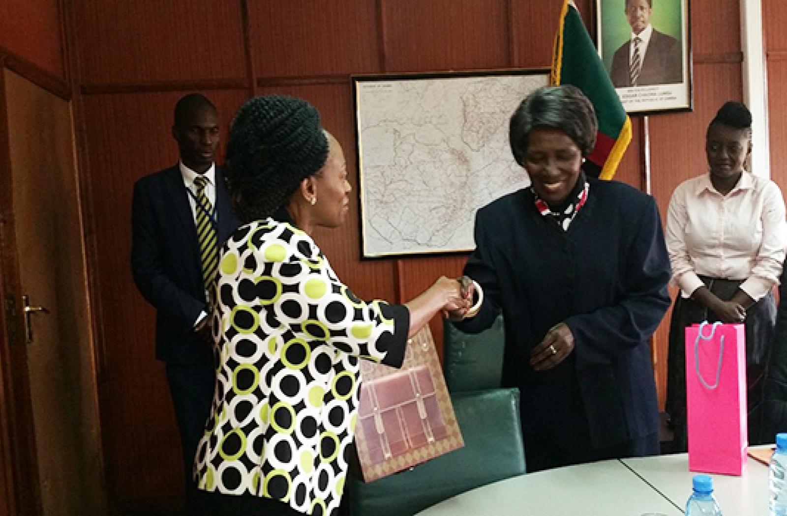 Deputy Secretary-General Ojiambo was received in audience by the Vice-President of Zambia, HE Inonge Wina, the Speaker of the National Assembly, Hon Dr Patrick Matibini and the Acting Minister of Foreign Affairs, Hon Vincent Mwale.