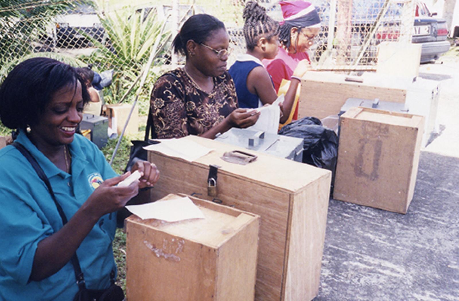 Photo caption: Election officials with ballot boxes during the Trinidad and Tobago General Election, 11 December 2000.
