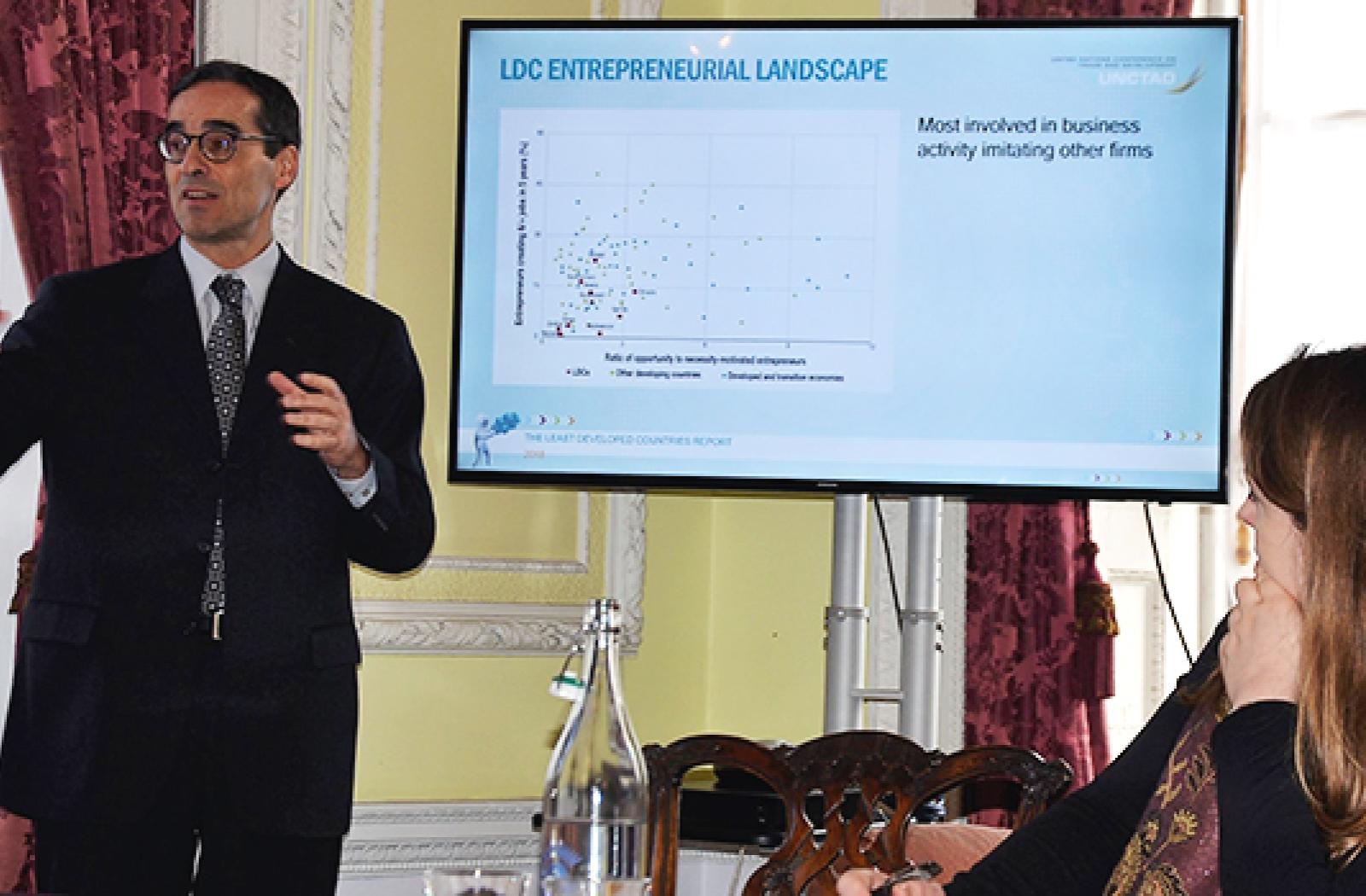 Presenting the report, Chief of the LDC Section at UNCTAD Rolf Traeger said that while nearly half the adult population in LDCs is engaged in entrepreneurial activity, most involve low-wage self-employment, with little innovation and low value-added activities.
