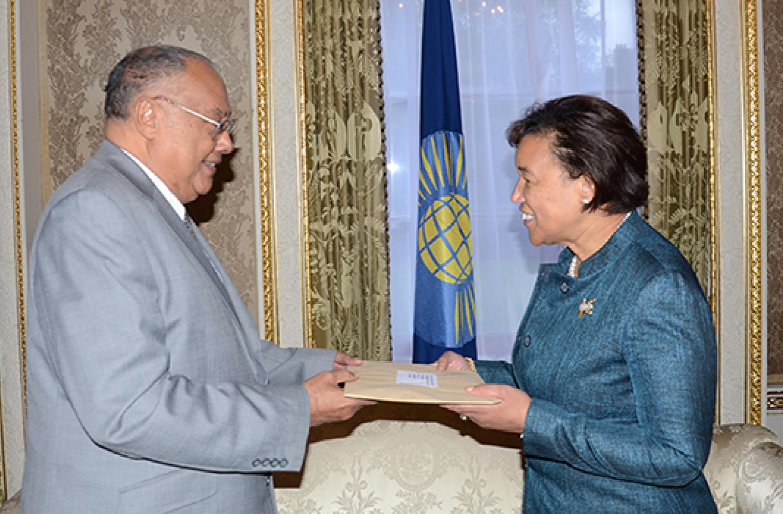 To mark the final step of The Gambia’s bid to re-enter the Commonwealth, Ambassador Francis Blain has presented Secretary-General Patricia Scotland with his country’s formal application.