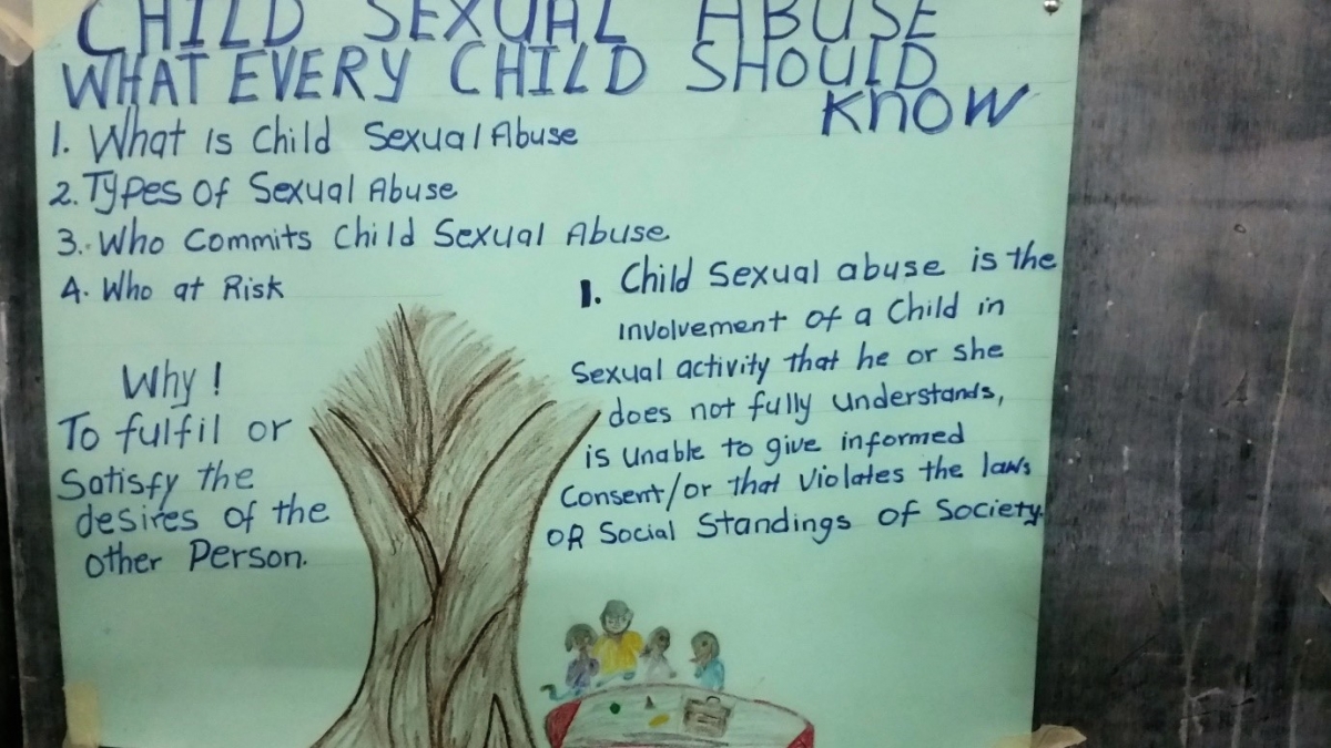 Critical role of the school: a sixth grade classroom poster on child sexual abuse
