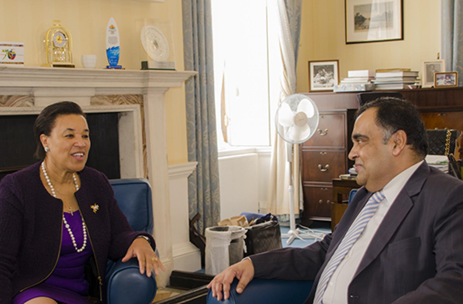 The Indian high commissioner, His Excellency Mr. Y.K. Sinha, paid a call on Secretary-General Patricia Scotland at Marlborough House today.