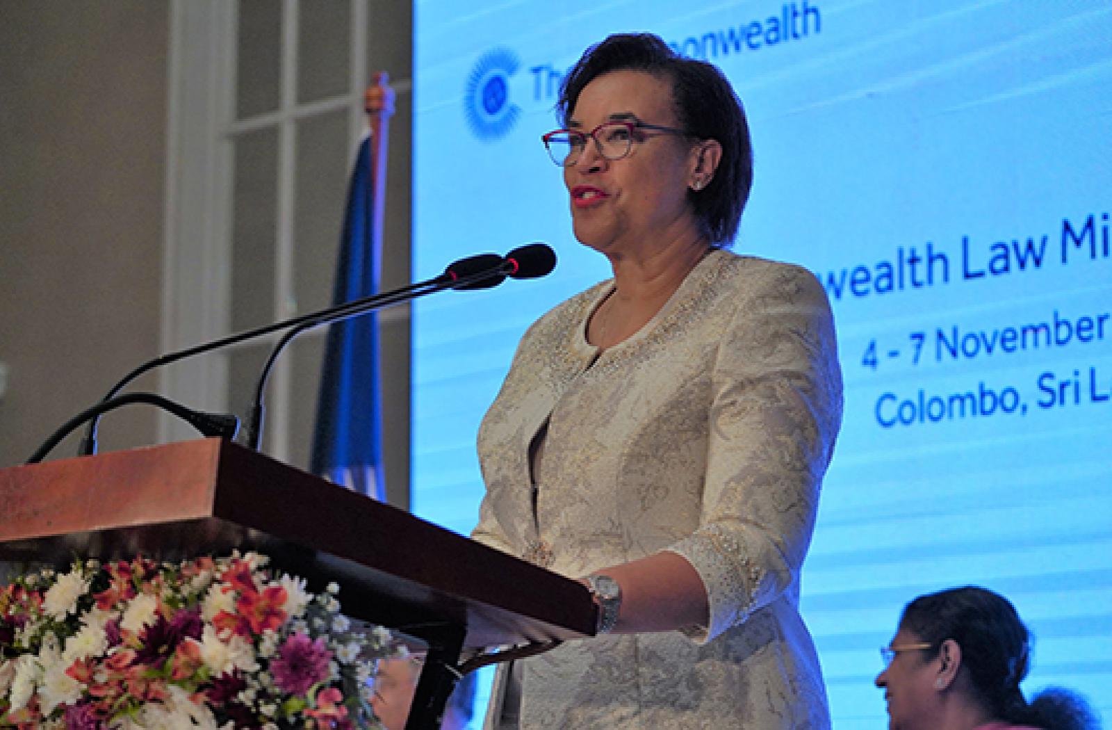 Patricia Scotland spoke at the opening ceremony of Commonwealth Law Ministers Meeting in Colombo, Sri Lanka, joined by the Prime Minister Ranil Wickremesinghe, Minister of Justice and Prison Reform Thalatha Atukorale, Speaker of Parliament Karu Jayasuriya, Chief Justice Jayantha Jayasuriya and more than 150 international delegates.
