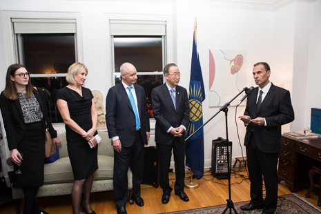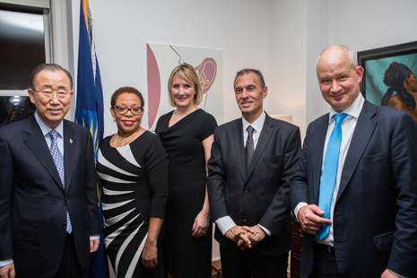 The reception was attended by (left to right): Ban Ki-moon, United Nations Secretary-General, Merleen Leonce, Chargé d’Affaires, Office of the Deputy Secretary-General at The Joint Office for Commonwealth Permanent Missions to the United Nations, Caroline Dinenage, UK MP, Parliamentary Under Secretary of State for Women, Equalities and Family Justice, and the hosts Mr Christopher Grima, Permanent Representative of the Republic of Malta and Ambassador Peter Wilson, Chargé d’Affaires of the United Kingdom.