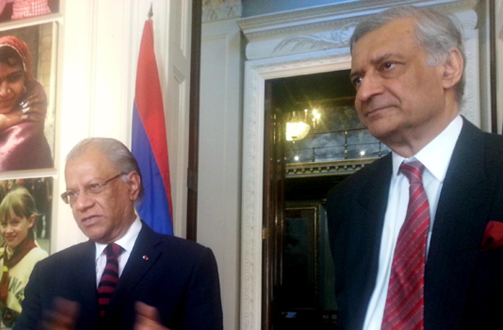 Commonwealth Secretary-General Kamalesh Sharma received Prime Minister Navinchandra Ramgoolam of Mauritius at the Commonwealth Secretariat, Marlborough House, London on Wednesday, 5 June.