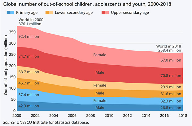 Ministers discussed challenges hindering progress in this area following research showing little progress has been made over the last decade. Around 250 million children – equivalent to the population of Pakistan – were out of school, representing one in every five children across the world.