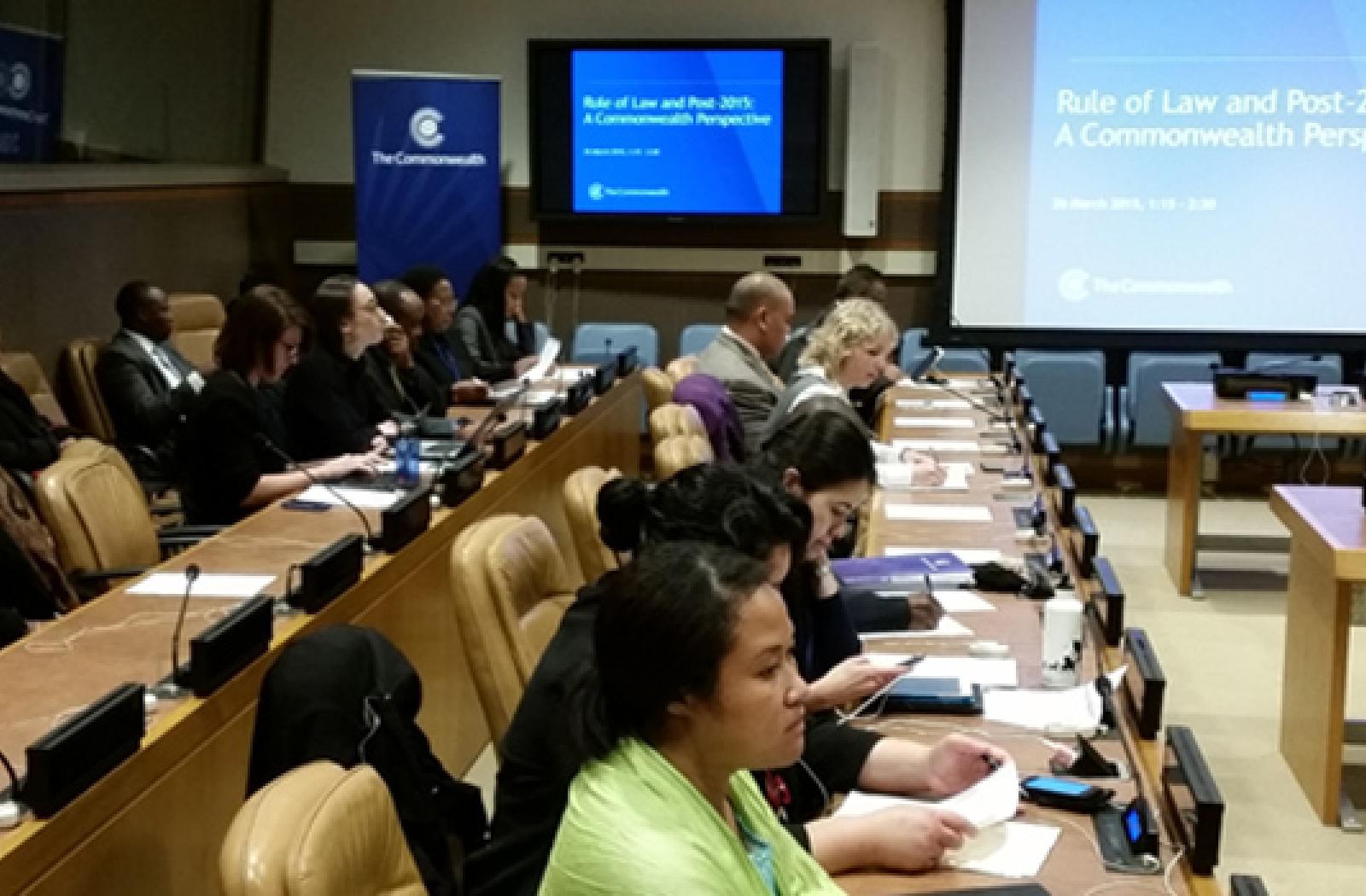 The meeting took place on the margins of the UN’s post-2015 negotiations in New York. It provided an opportunity for a panel of Commonwealth experts from Tonga, Jamaica, Belize, and Botswana to address the practical aspects of rule of law and development.