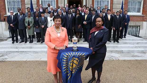 Photo caption: The Commonwealth Secretary-General and the Commonwealth Secretariat’s Board of Governors stand proudly with the Commonwealth Cup, which will be presented to the winner of the race at Royal Ascot on Friday 17 June 2016.