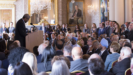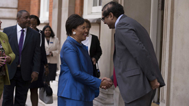 To the rhythm of a steel band, the sound of a gospel choir, and the flair of Quadrille dancers, hundreds of guests welcomed the new Secretary-General at Commonwealth headquarters in Marlborough House. They included well-known figures from the world of politics, sports and broadcasting. The event was hosted by Garth Crooks, the English former footballer, and included performances by singer Heather Small of M People, tenor Franz Hepburn and actor Hugh Quarshie.
