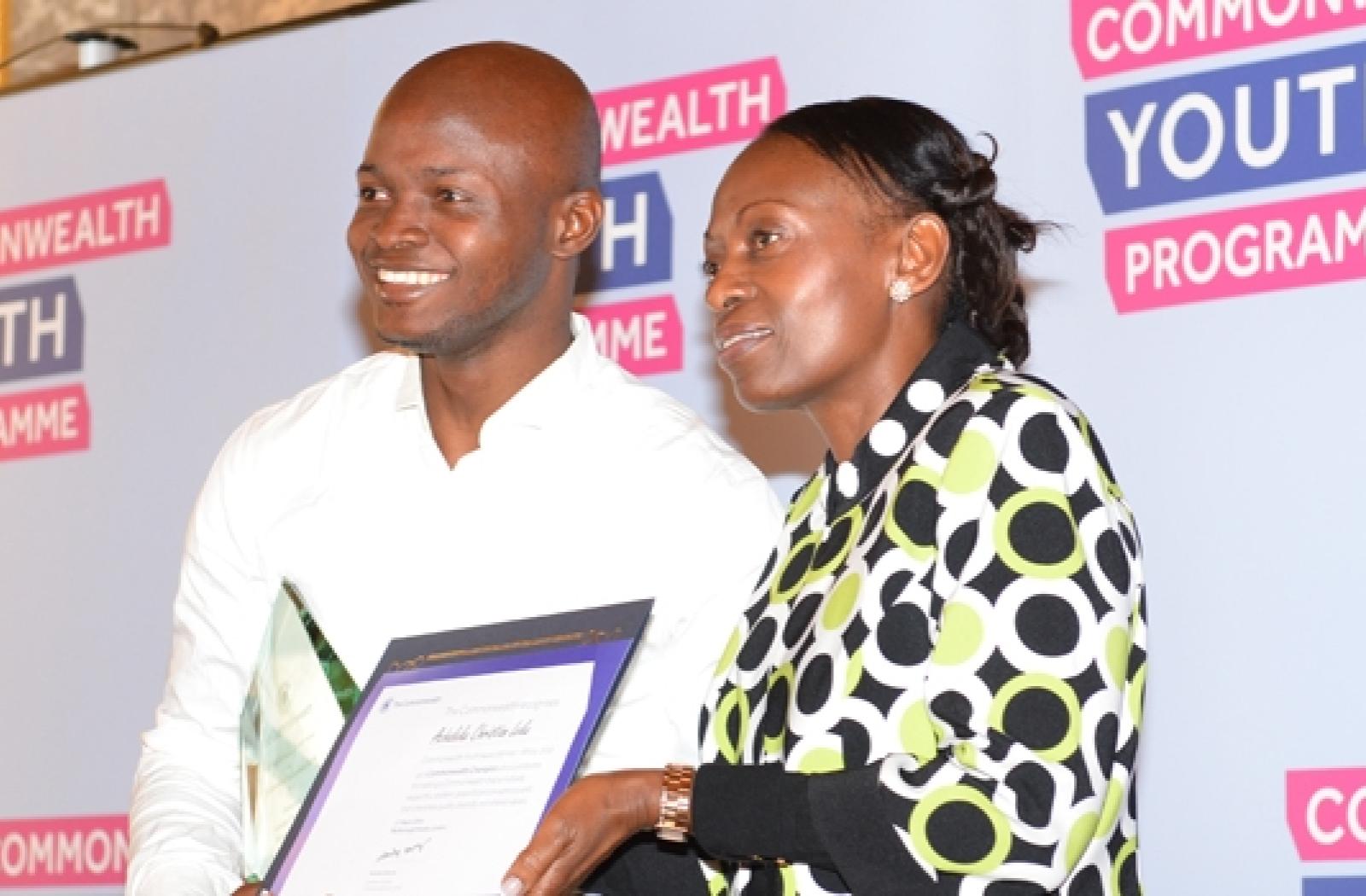 Featured image: Commonwealth Young Person of the Year 2015 Christian Achaleke Leke with Deputy Secretary-General Ojiambo