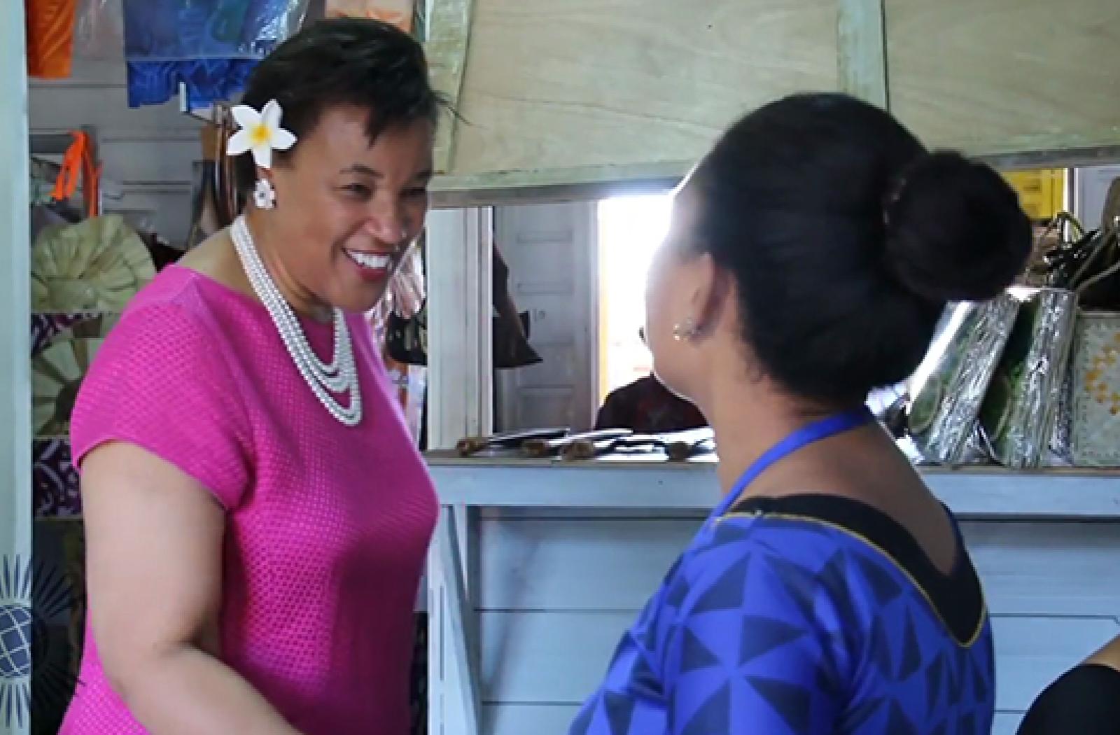 After three months, vendors were able to return to the market in temporary tents, where the Commonwealth Secretary-General visited Molly during a mission to Samoa in September.