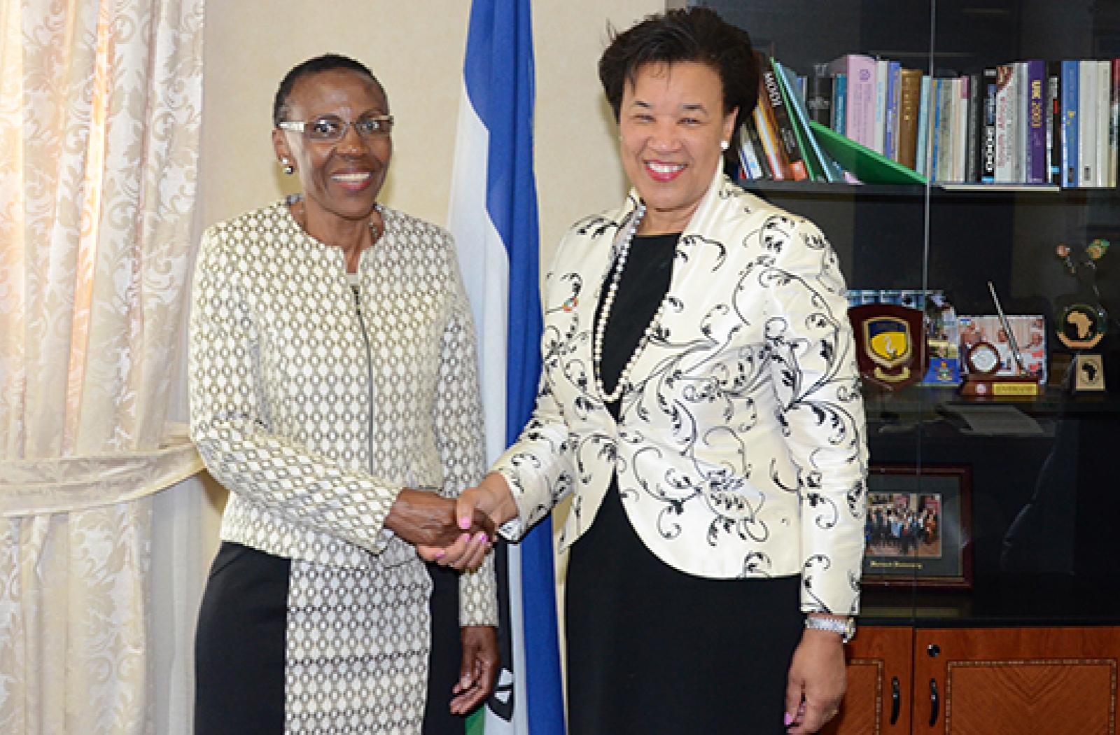 On the first day of her mission, she met with the Minister of Foreign Affairs, Mamphono Khaketla, Lesotho’s newly-appointed High Commissioner to the UK, John Oliphant, the Chairperson of Lesotho’s Independent Electoral Commission, Mahapela Lehohla, Commissioner Makase Nyaphisi, United Nations Development Programme (UNDP) Deputy Resident Representative Christy Ahenkora, and Peace and Development Adviser George Wachira.