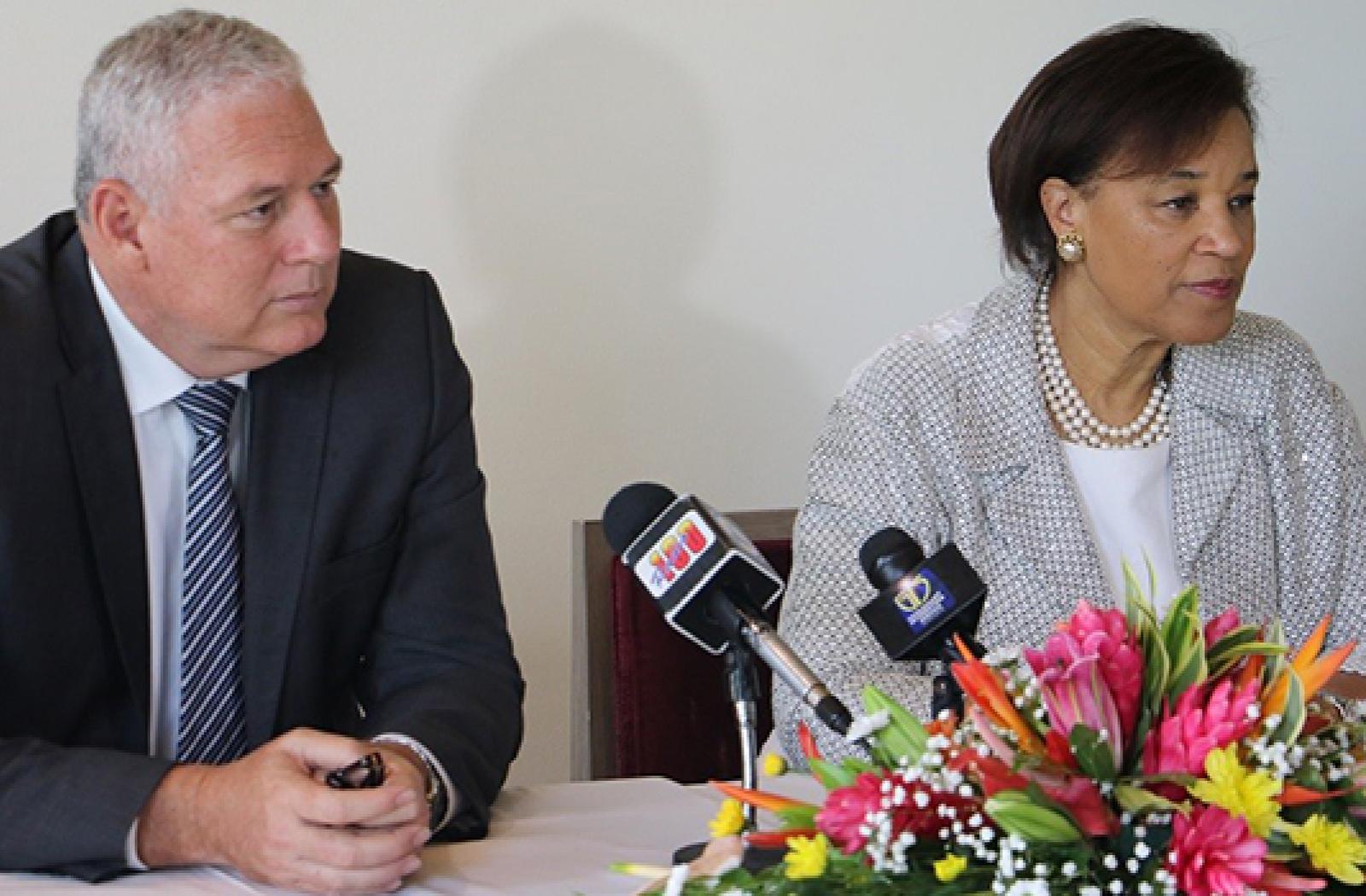 Secretary-General Scotland began her visit to the region in Saint Lucia. She met with prime minister Allen Chastanet, who has been leading the call for development assistance rules to take into account vulnerability to natural disasters, and holds the portfolio for environment and disaster management in the quasi cabinet of Caribbean Community (CARICOM). She also met with government ministers and the leader of the opposition, Philip Pierre.