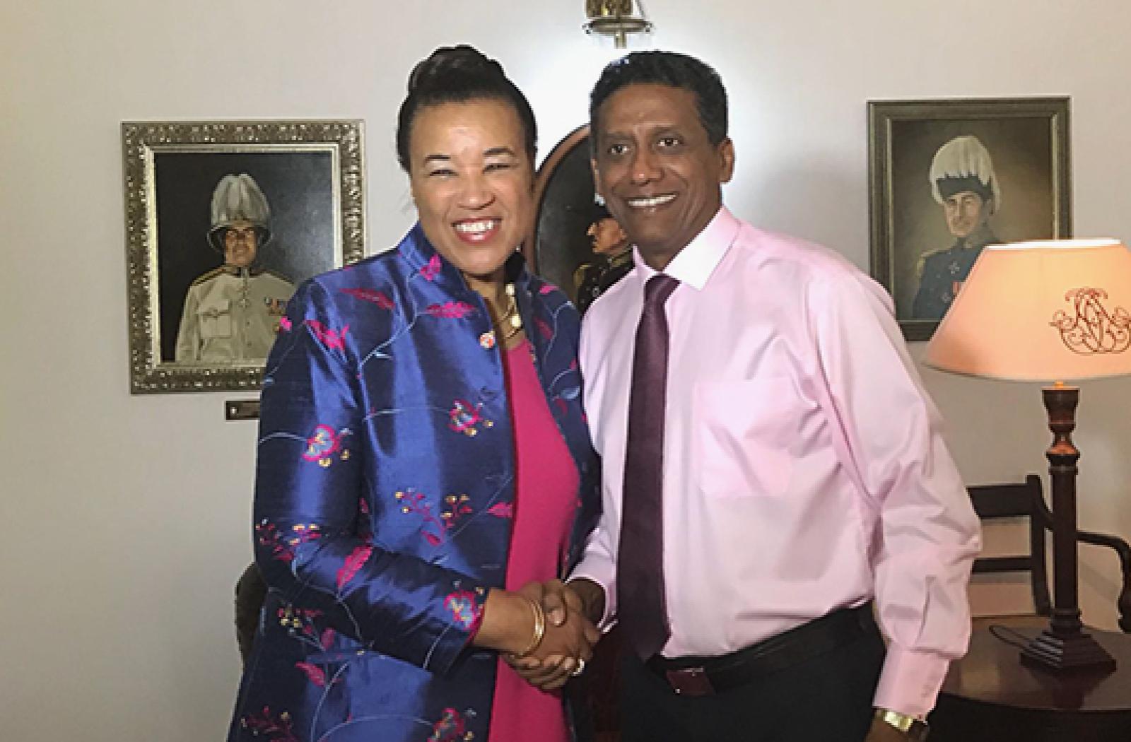 Secretary-General Scotland said the Blue Charter will support small island countries in developing their economies while being ‘guardians’ of the ocean. “We are now going to put the rules in place so that prosperity will come from our oceans, but it will come in a sustainable, managed, consensual way,” she stated. She thanked the Seychelles government for its advocacy on climate change, ocean issues and the vulnerability of small states.