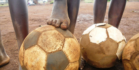 A close up of the feet and footballs of young talents in Mathare slums' by Eric Omwanda, Kenya