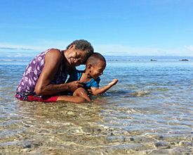 Bulou Mereadani (L), 57, with her grandson Lemeki Baselala, 3, find happiness in the Ocean in Korotogo, Sigatoka, Fiji' by Kelvin Anthony, Fiji