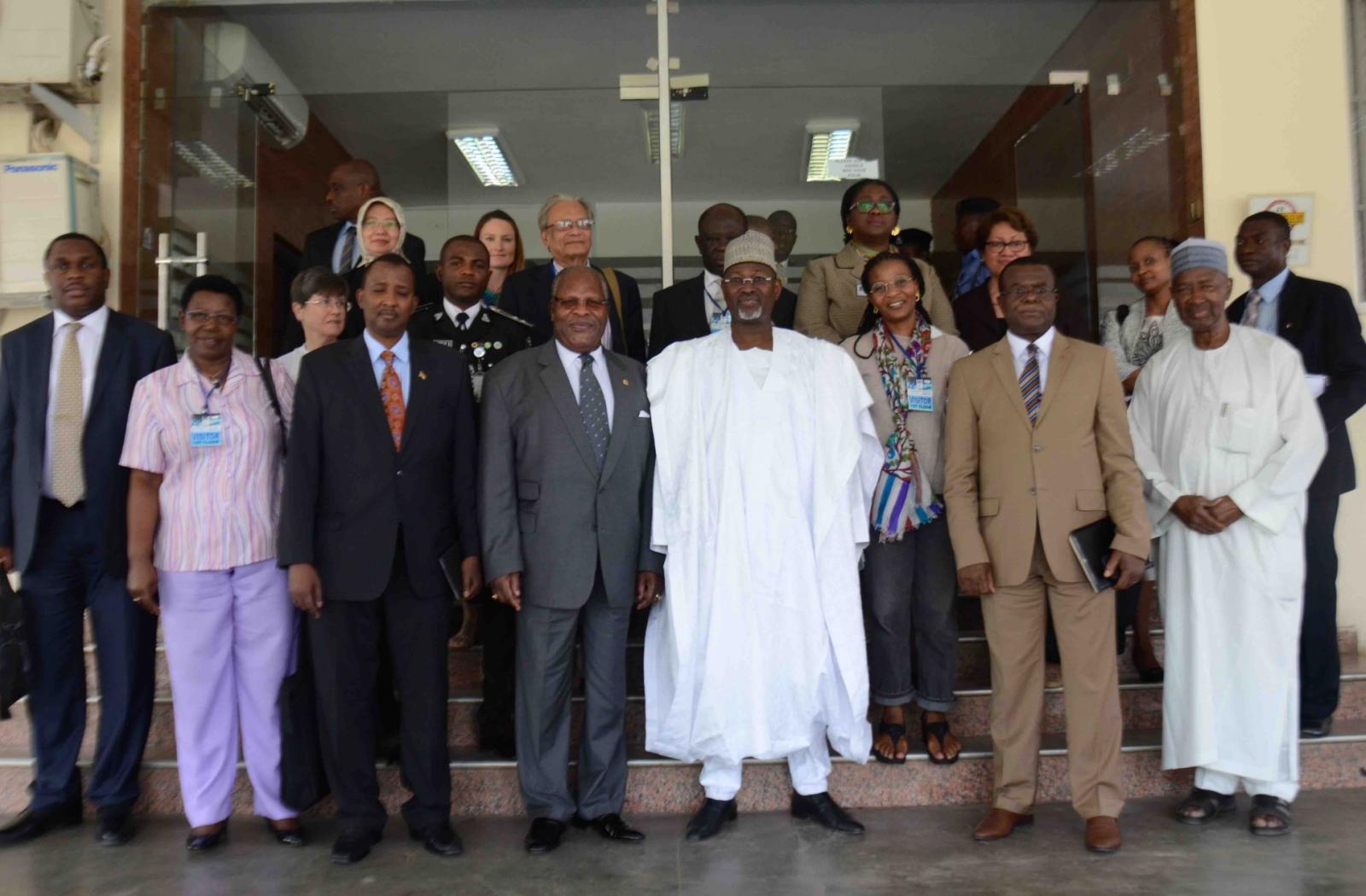 Photo: Dr Bakili Muluzi, Chairperson of Commonwealth Observer Group (centre left) and other Commonwealth observers meet Professor Attahiru Jega, Chairman of Nigeria's Independent National Electoral Commission (centre right).