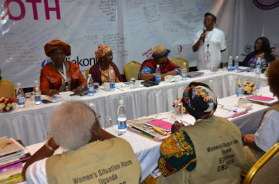 First formed for Liberia’s 2011 elections, the Women’s Situation Room has since been established for national polls in Senegal, Sierra Leone, Kenya, Malawi and Nigeria. In Uganda, it is formed of a coalition of three local organisations - Isis-WICCE, Forum for Women in Democracy and the Institute for Social Transformation and is operating in 15 districts, engaging women and young people to play an active role in preventing election violence.