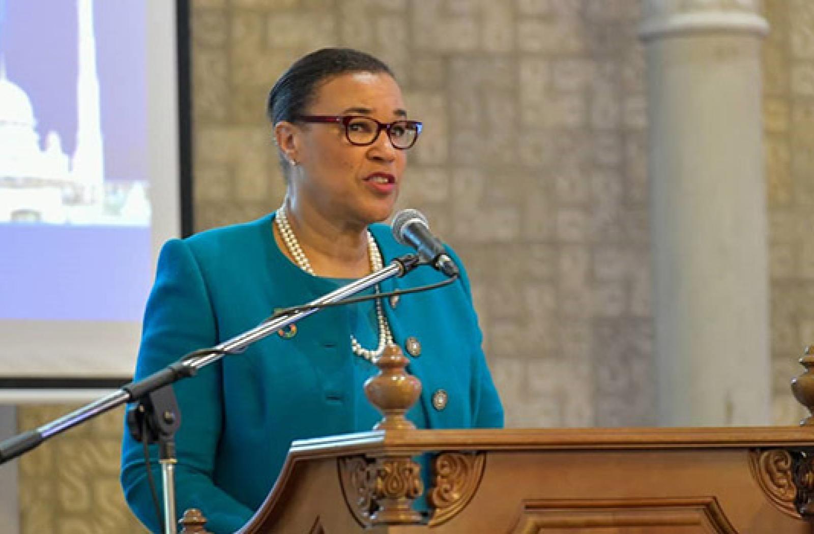 In her keynote address the Secretary-General described the Commonwealth’s efforts to "build mutual respect and shape a world that is more just, more equitable and more inclusive."