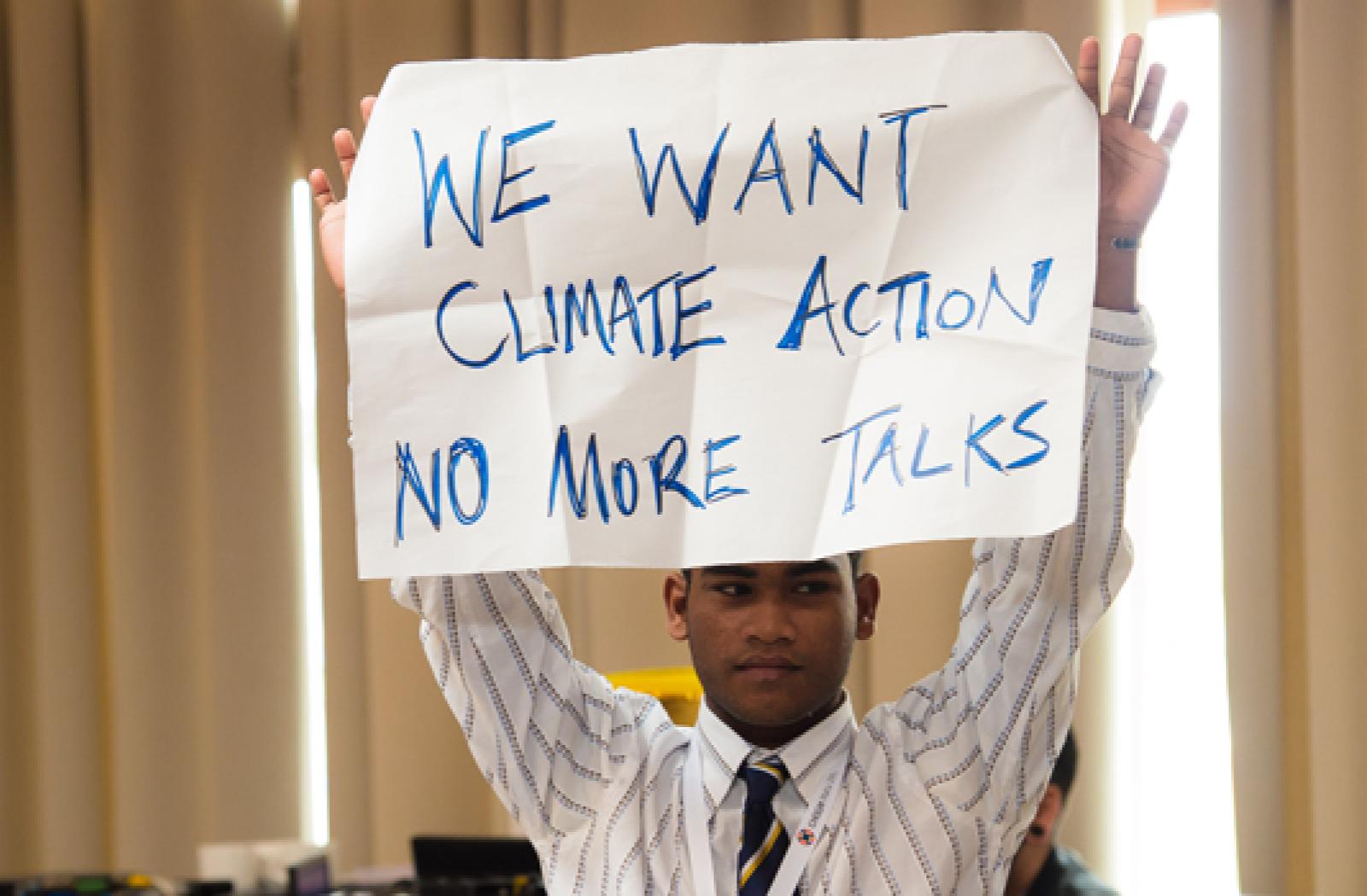 Christina Jillian Keziah, a youth delegate from Papua New Guinea, made a passionate appeal to her colleagues to take the lead in addressing climate change, and received a standing ovation from the floor.